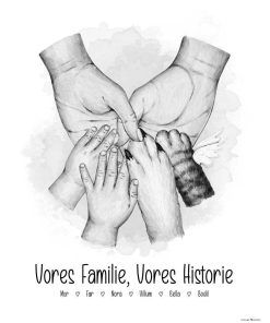 En familieplakat med hænder er en varm og personlig julegave, der samler hele jeres flok – børn, voksne og firbenede. Du vælger selv, hvem der skal med, og hvordan hænderne skal sættes sammen, så plakaten passer præcis til jeres familie.